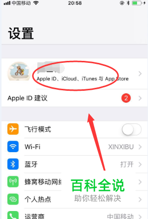 设置界面中,登录Apple ID账号,点击第一个选项菜单;