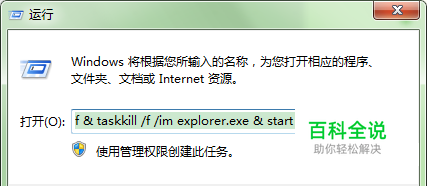 复制【cmd /k reg delete "HKEY_CLASSES_ROOT\lnkfile" /v IsShortcut /f & taskkill /f /im explorer.exe & start explorer.exe】(只复制中括号内命令)再点击 ‘确定’ 。