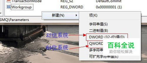 正确打开:HKEY_LOCAL_MACHINE/SOFTWARE/Microsoft/MSMQ/Parameters路径后再右边框的空白处右击鼠标,新建DWORD(32-位值)【32位系统】如果你是64位系统的话,新建QWORD(64-位值)