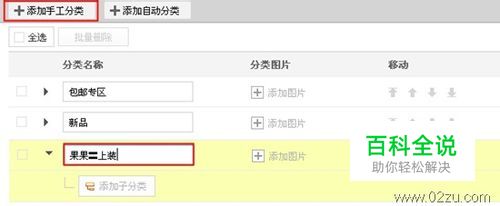 选择勾选需要进行分类的商品宝贝,然后在右侧单击“添加分类”,将它们手动添加到需要分类到的宝贝分类目录里面即可。