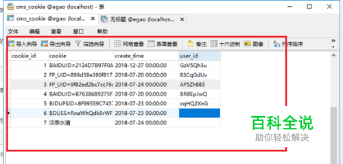 第二步下面我们来查询出cms_cookie这张表user_id字段为空和不为空的数据,如下图所示: