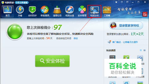 打开“QQ电脑管家”,在右上角找到“电脑诊所”,点击进入