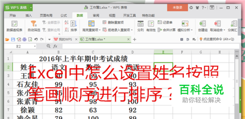 Excel中怎么设置姓名按照笔画顺序进行排序?