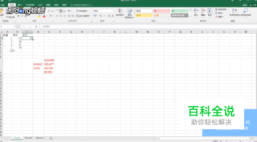 方法二:点击“C6”单元格,输入“=SUMPRODUCT(A2:A5,B2:B5)”后按“回车”即可。