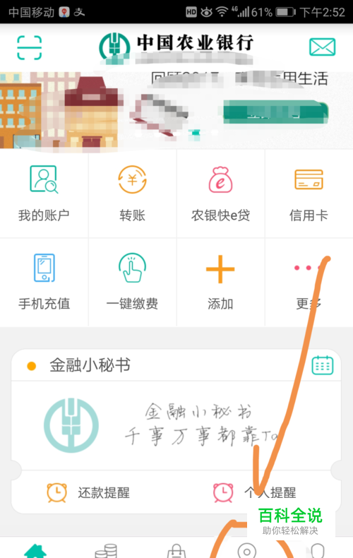 进入中国农业银行应用界面后点按界面下方的附近标志。