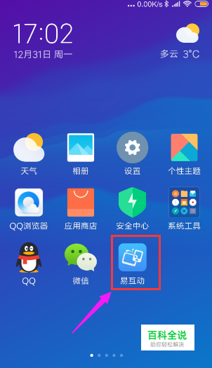 在手机桌面上安装易互动的APP软件,然后点击打开。