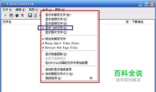 首先打开VideoCacheView软件,打开后在选项设置你要提取文件的内容,因为我们要提取FLASH把其他的勾都去掉,当然你也可以全部保留,那样文件都会出来,找起来比较麻烦·