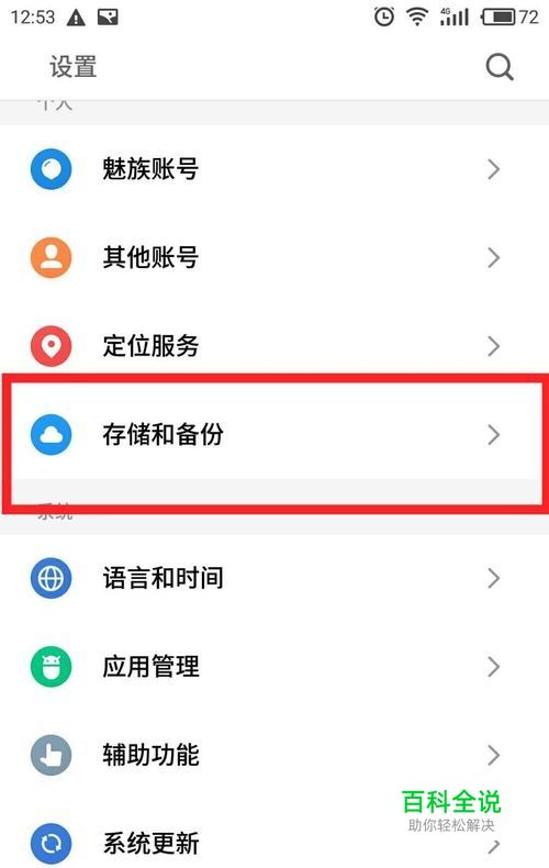 然后进入到设置里面,找到存储与备份,我们先来看下我当前手机的内存还剩下多少。
