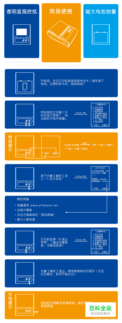 易联云为商家提供线上线下一站式的解决方案,易联云打印机适用于:订单信息、收银信息、到店自提核销、优惠券/优惠码核销。易联云云打印便携式M1使用教程如下。