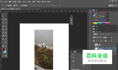 方法一、导入枞阳莲湖公园拍摄的熊猫图片。ctrl+t缩小图片,移动图片放置合适位置。