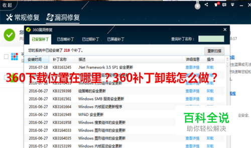 在此界面,有新安装的,还有过期的补丁,这些补丁的右侧就是 卸载按键,点击卸载即可进行。