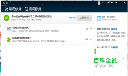 和上面一样,需要进行高危漏洞界面才能卸载不掉,执行方法: 主界面-查杀修复-漏洞补丁-高危漏洞。