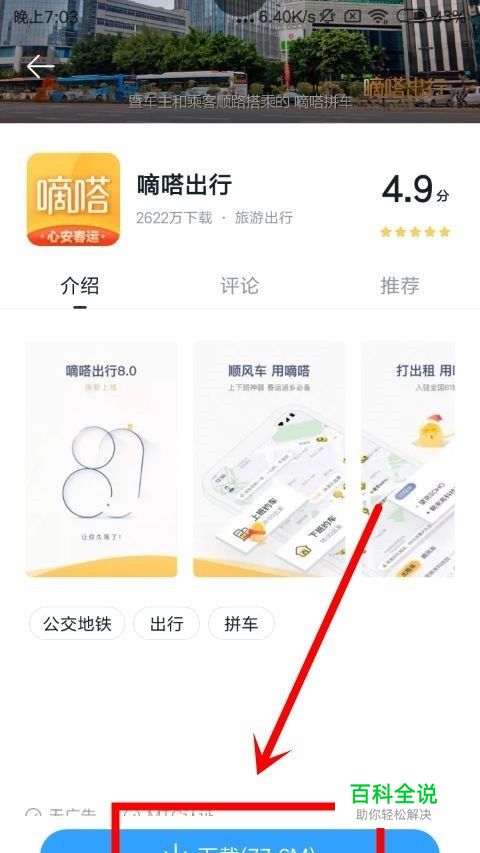 首先,我们先去手机助手中将嘀嗒出行这款软件下载下来,点击该页面正下方位置的下载按钮,开始进行下载。