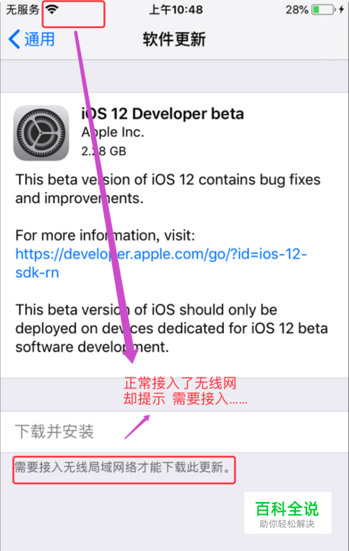 iOS 更新之 已接入无线局域网却提示需要接入。本节介绍,iOS 进行系统升级时,已经接入无线局域网了,却在要iOS系统升级更新时提示 需要接入无线局域网才能下载此更新,且下载与安装是灰色,不能点击的解决办法,具体如下