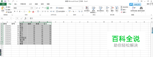 按住ctrl键,选择你要做成图表的数据的那一行或者那一列。比如我选择姓名,高数,英语,语文这四列。