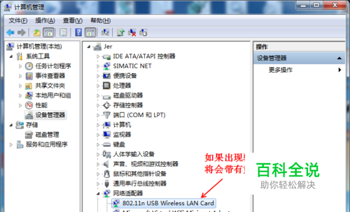 检查电脑上面的网卡驱动是否正常。如果出现异常,则重新安装一下网卡驱动。