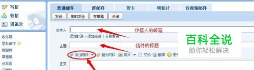 我们在写信时,通常把要发送的文件用附件的方式放到邮箱中,收信人收到信后,点击附件下载到自己电脑上才能看到内容。