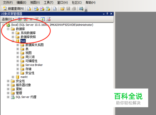 4、当数据库分离之后,我们就可以看到数据库的菜单上,就没有huo这个数据了,这样你就分离成功了。
