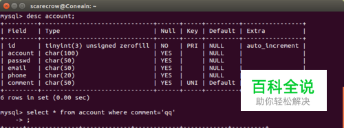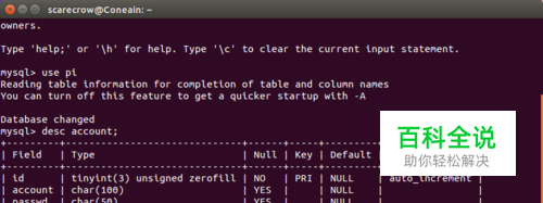 然后确保你的表里已经有你得信息,小编已经提前在表中储存了账户和密码信息,如图