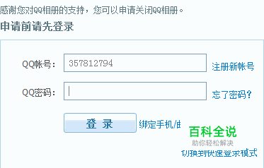 打开申请关闭QQ相册的地址(地址在参考资料中),登录你的QQ号