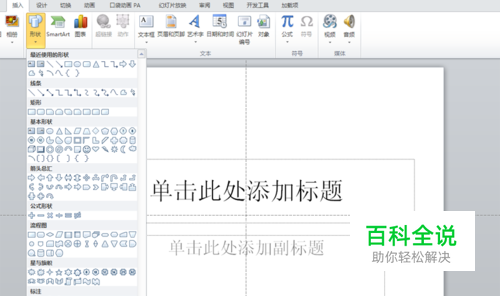 启动ppt2010,执行插入-形状命令,从菜单中选择动作按钮中结束按钮。