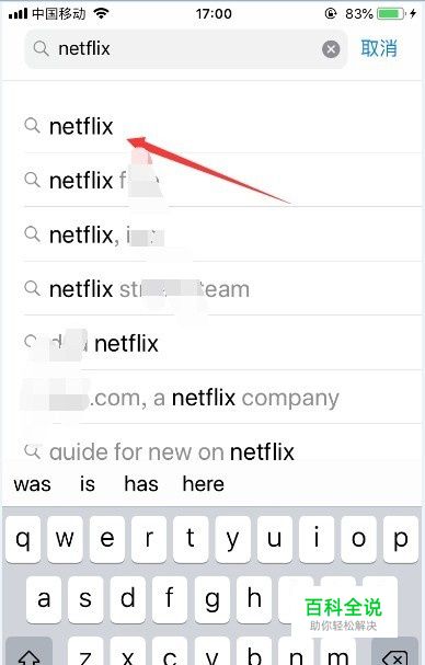 然后直接在搜索框输入“netflix”,选择搜索结果的第一条,并点击进入,如图所示。