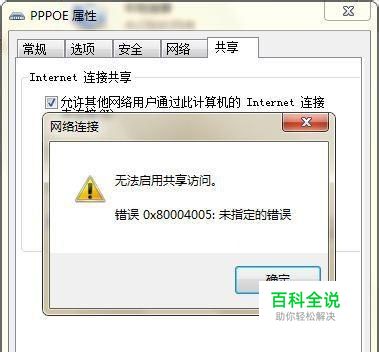 会遇到以下报错:无法启用共享访问,错误0x80004005,