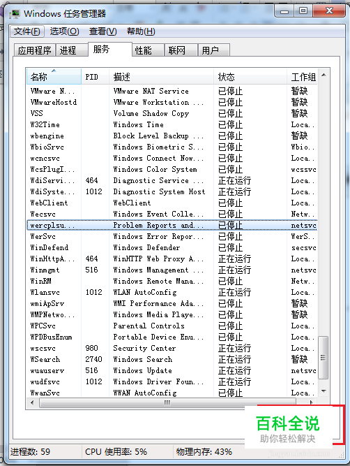 任务栏 空白处,右击,进入——任务管理器——切换到服务标签页、点击服务按钮