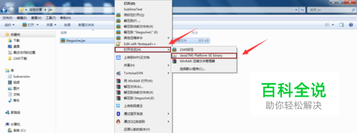 若安装好JDK,则可以找到需要打开的.jar文件,鼠标右键该文件,选择打开方式,选择Java(TM) Platform SE binary。