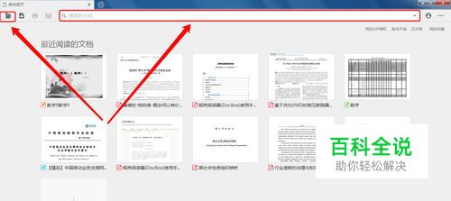 打开稻壳阅读器,找到一篇文档。稻壳阅读器既支持本地打开文档,也支持在线搜索文档,工具栏左边标识即为打开本地文档,最上面是在线文档搜索框,搜索想要的文档的关键字即可找到对应的文档。