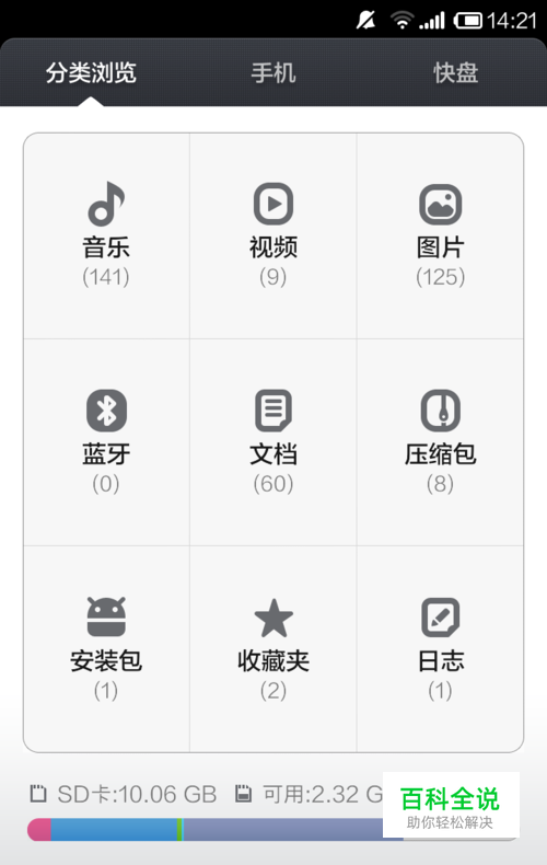 这时候不用着急,不必一个个文件夹的找,在页面左上方的选项有个分类浏览,点击分类浏览就可以查看手机文件了。