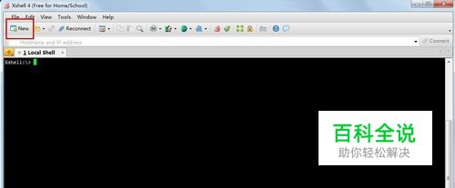 Xshell 4打开后如下图所示,会出现一个界面框,这个界面框类似于DOS的界面,需要操控远程的主机,都是通过这个界面进行操作。在这个界面左上角的位置有一个【New】意为新建,点击这个New。