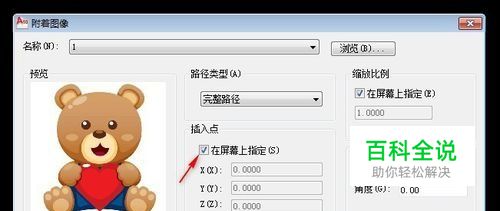 在弹出的【附着图像】对话框中,单击选中【在屏幕上指定】复选框,然后根据自己的实际需要,单击屏幕上的任意位置,完成图像插入。