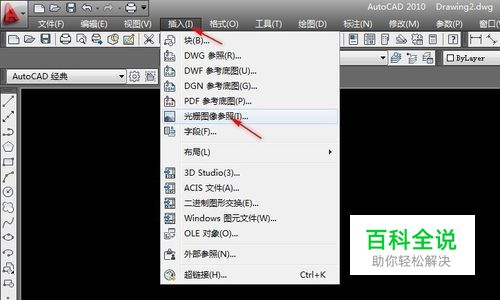 首先,我们先插入一张光栅图像。打开CAD,单击菜单中的【插入】-【光栅图像参照】,找到存放图像的文件夹,单击【打开】。