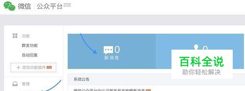 登录微信公众号以后,在页面中可以点击 “消息管理”或 “新消息”选项,如图所示