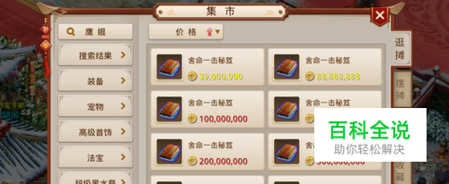 首先我们登录我们的问道手游,问道手游的天技秘笈可以通过集市购买获得。可以买到各种各样的秘笈。