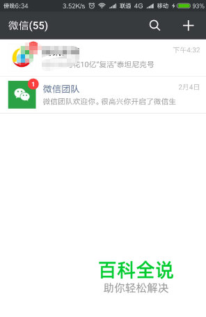 运行微信,打开之后,默认来到微信页。