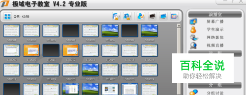 本以“极域教室”为例,演示教师机展示操作给全体学生观看以及展示某一台学生机上的操作。