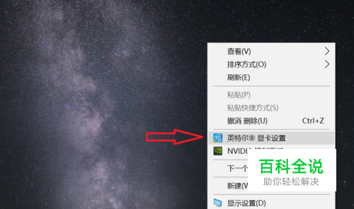 在桌面空白处右击,选择英特尔显卡设置;