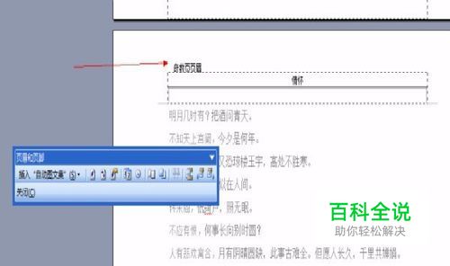 电脑会自动进入页眉的编辑状态,如果不能编辑,利用鼠标双击页眉处就好了。