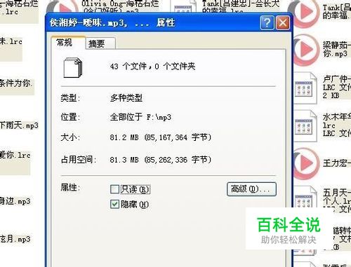 我们在任意盘符下创建一个隐藏文件,这里把F:\mp3下的所有文件设置隐藏