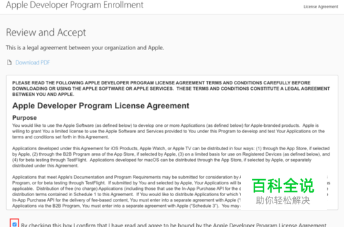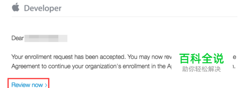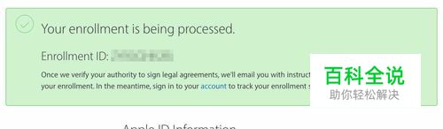 信息填写完毕后,点击【Continue】进入信息确认页面。信息核对无误后继续点击【Continue】进入下一个页面。该页面会显示【Your enrollment is being processed】,这说明你的申请已提交成功。接着,会收到苹果的申请接受邮件。