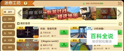 点进迷你工坊,在这里面可以下载很多其他人好玩的地图,每个地图旁边都有个下载按钮,按下下载就好了。