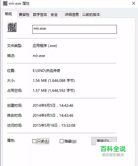 将mir.exe右击属性