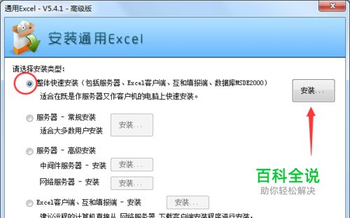 2.双击运行后,在出现的窗口里,选择左侧的“整体快速安装”,然后点击右侧的【安装】按钮;