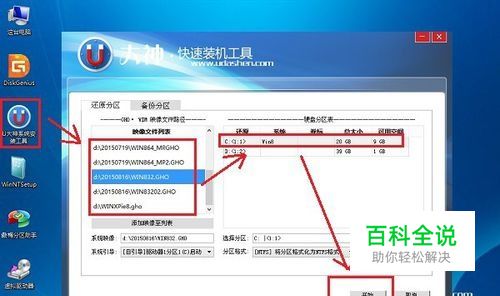 进入pe系统后,打开桌面“U大神系统安装工具”安装工具,然后选择好已经准备好的.ISO系统镜像文件,然后在硬盘分区表下单击选择C盘为系统安装盘,再点击“开始”按钮。