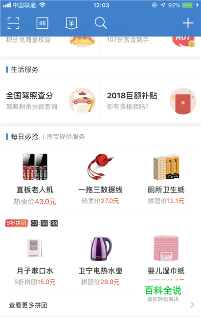 我们打开我们的支付宝app,进入到首页之后,一直往下面滑动屏幕。
