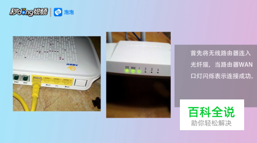 首先将无线路由器连入光纤猫,当路由器wan口灯闪烁表示连接成功。