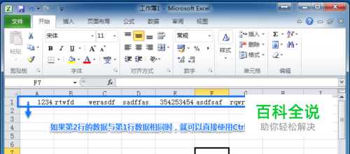 第一步:选中需要填充的一行,也就是贴邻源数据的第2行