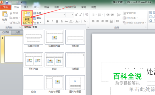 如果要添加PPT,点击工具栏的【新建幻灯片】,可以自由选择PPT模板如图所示。